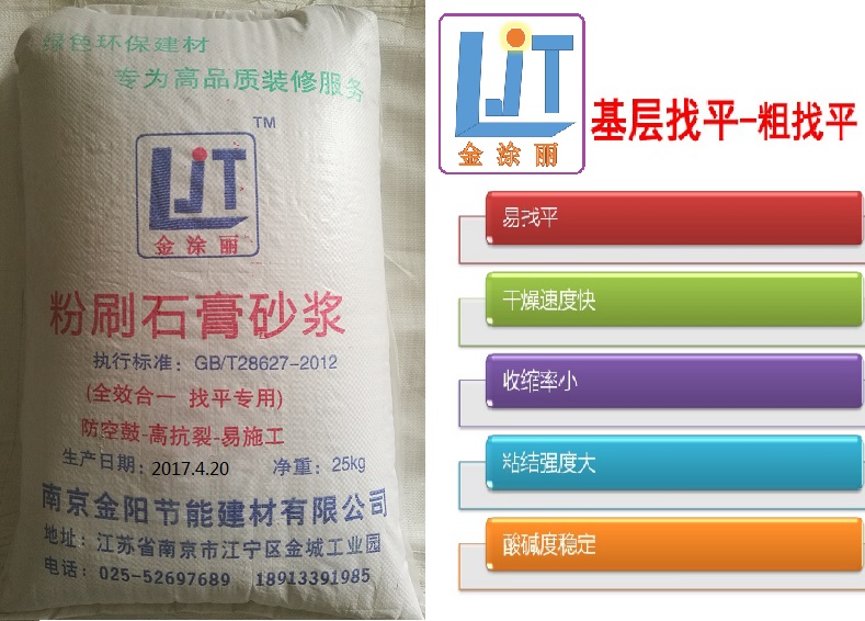 產(chǎn) 品 說 明 金涂麗石膏找平膩子是一種綠色環(huán)保不含任何有害物質(zhì)的墻體粉刷材料。由天然石膏粉和優(yōu)質(zhì)石英砂以及多種進口原料混合而成。現(xiàn)已廣泛用于室內(nèi)裝修頂棚、墻體找平。具有與基層粘結(jié)牢固,不空鼓,不開裂,不脫粉,輕質(zhì),防火,保溫隔熱,吸 音等功能。
