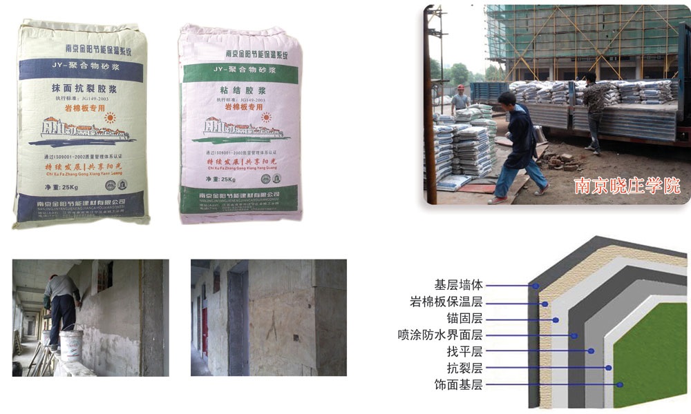 巖棉板專(zhuān)用砂漿是本公司針對(duì)巖棉板不易粘結(jié),易開(kāi)裂而精心研發(fā)的一種高強(qiáng)度粘結(jié)砂漿。添加了多種進(jìn)口膠粉及抗裂成分使得抹面層的抗沖擊性大大提升。產(chǎn)品能永久粘結(jié),不脫落,防滲,抗裂的特點(diǎn)。從而保證巖棉板保溫層外墻涂料的使用壽命。